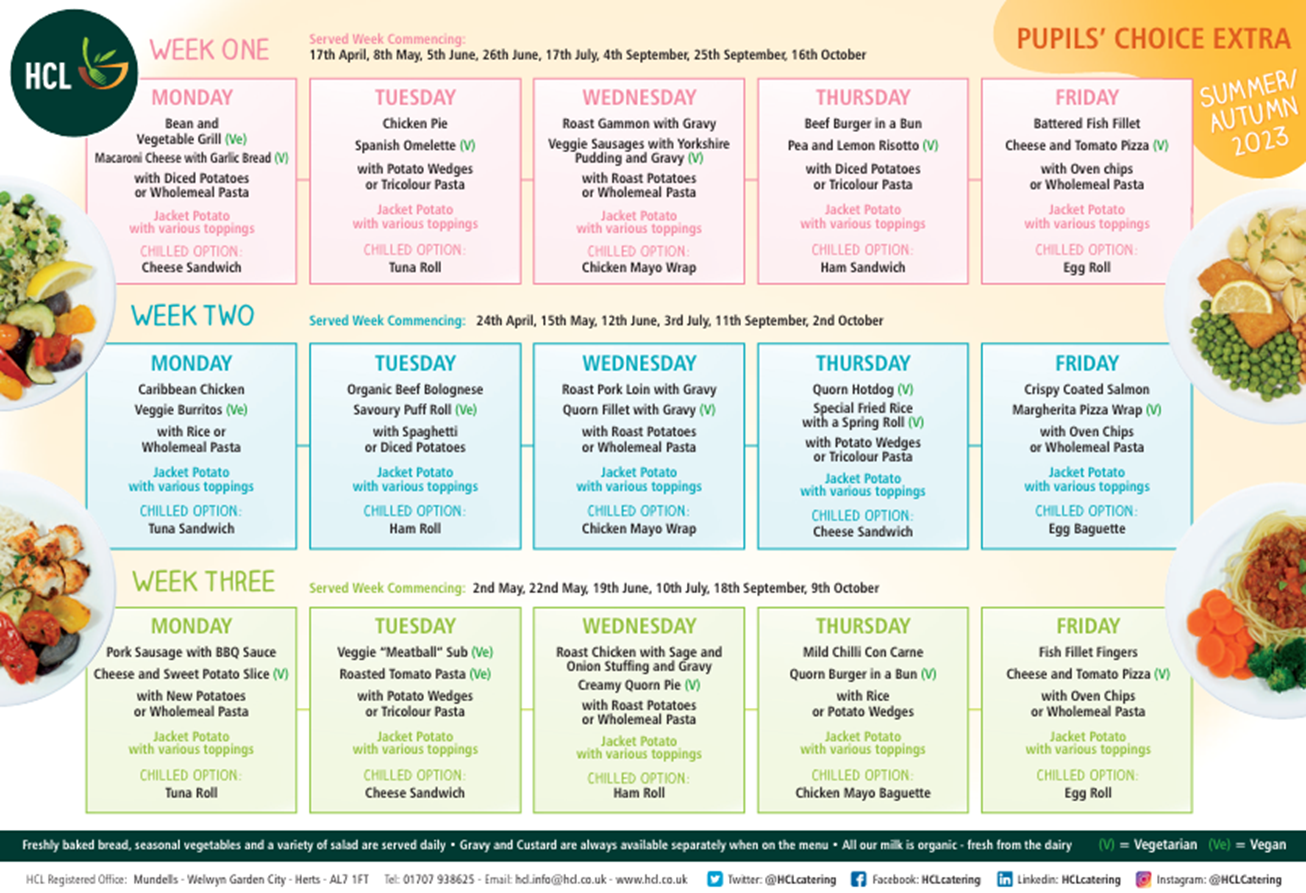Our lunch and tea is provided by Hertfordshire Catering Limited and prepared fresh daily onsite.